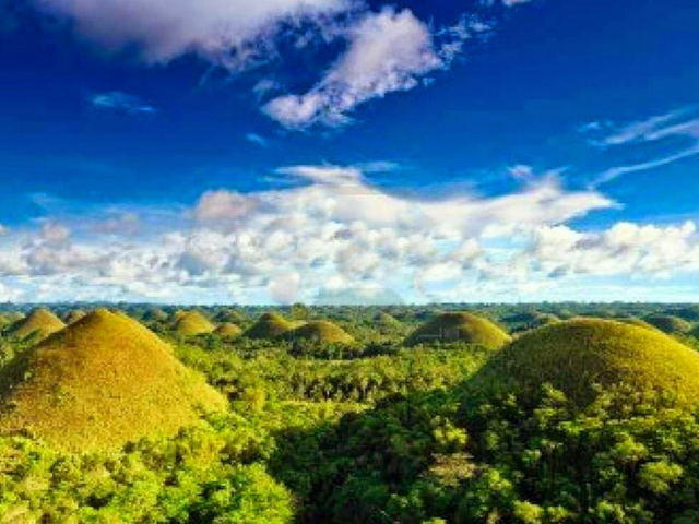 Bohol takes pride in its mountains as well as its beaches, simultaneously featuring the world-famous Chocolate Hills and the dreamy shores of Panglao. Chocolate Hills is a series of 1,776 perfectly symmetrical, haycock-shaped hills that rise from 40-120 meters above the ground. During summer the Hills dry up and turn brown transforming the area into seemingly endless rows of chocolate “Kisses.” The Philippine Tarsier, the world’s smallest primate, is indigenous to Bohol. Tarsiers have large eyes, measure 4-5 inches and have tails longer than their bodies. The species is believed to be about 45 million years old.